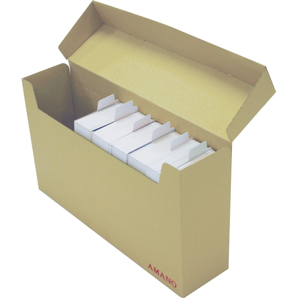 ・保 存 箱 収 納 量 : アマノ標準カードは9包(900枚)目安、その他アマノ製タイムカードは18包(1800枚)目安